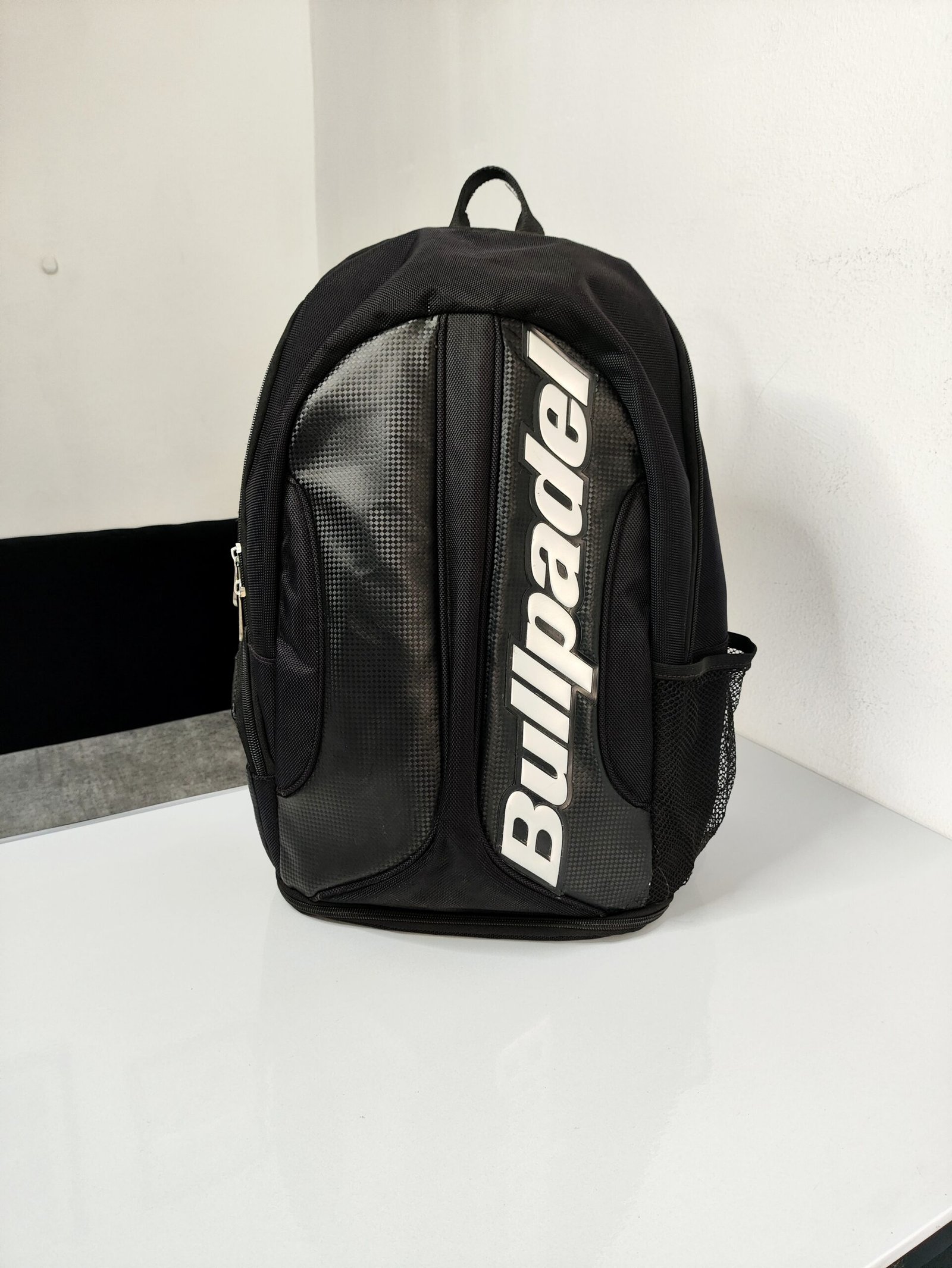 - Design : Finition noire élégante avec des détails blancs et un motif rappelant la fibre de carbone.