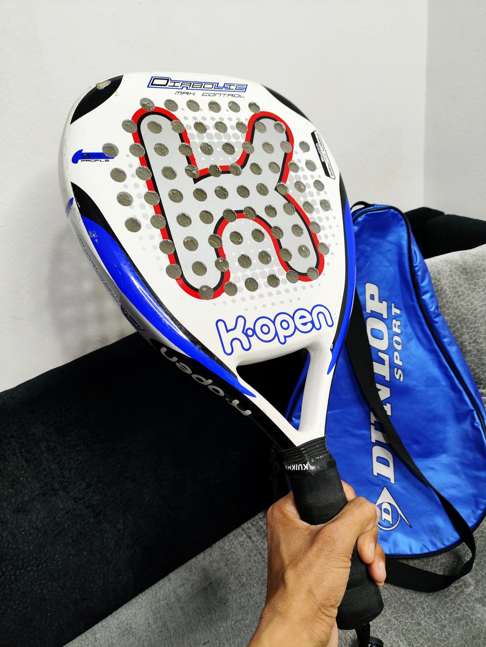 Cette raquette est une K-Open Diabolik Max Control, un modèle principalement conçu pour les jeunes joueurs ou les débutants recherchant une grande maniabilité