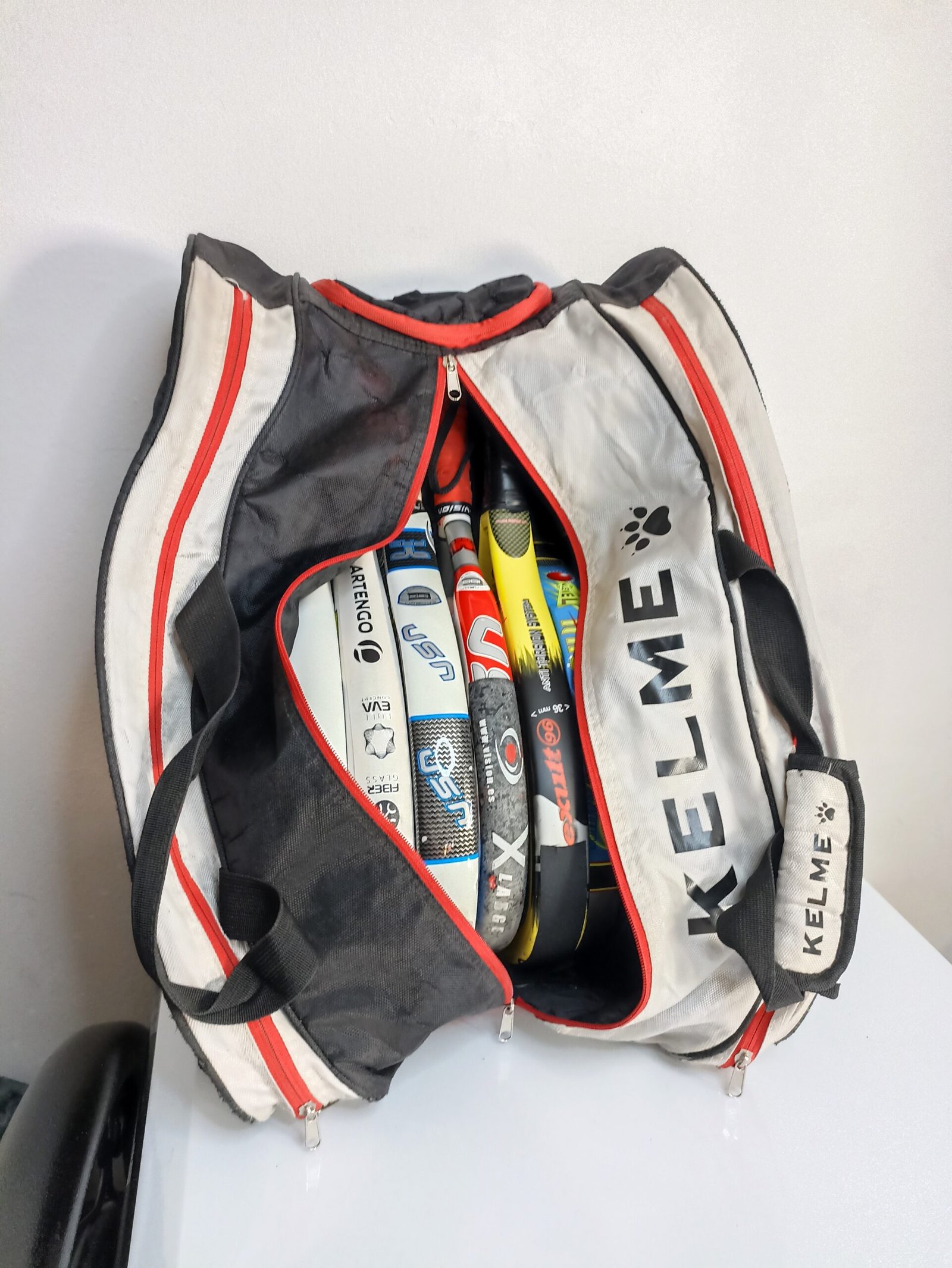 Poches latérales : Deux compartiments spécifiques sont prévus sur les côtés pour protéger vos raquettes de padel.