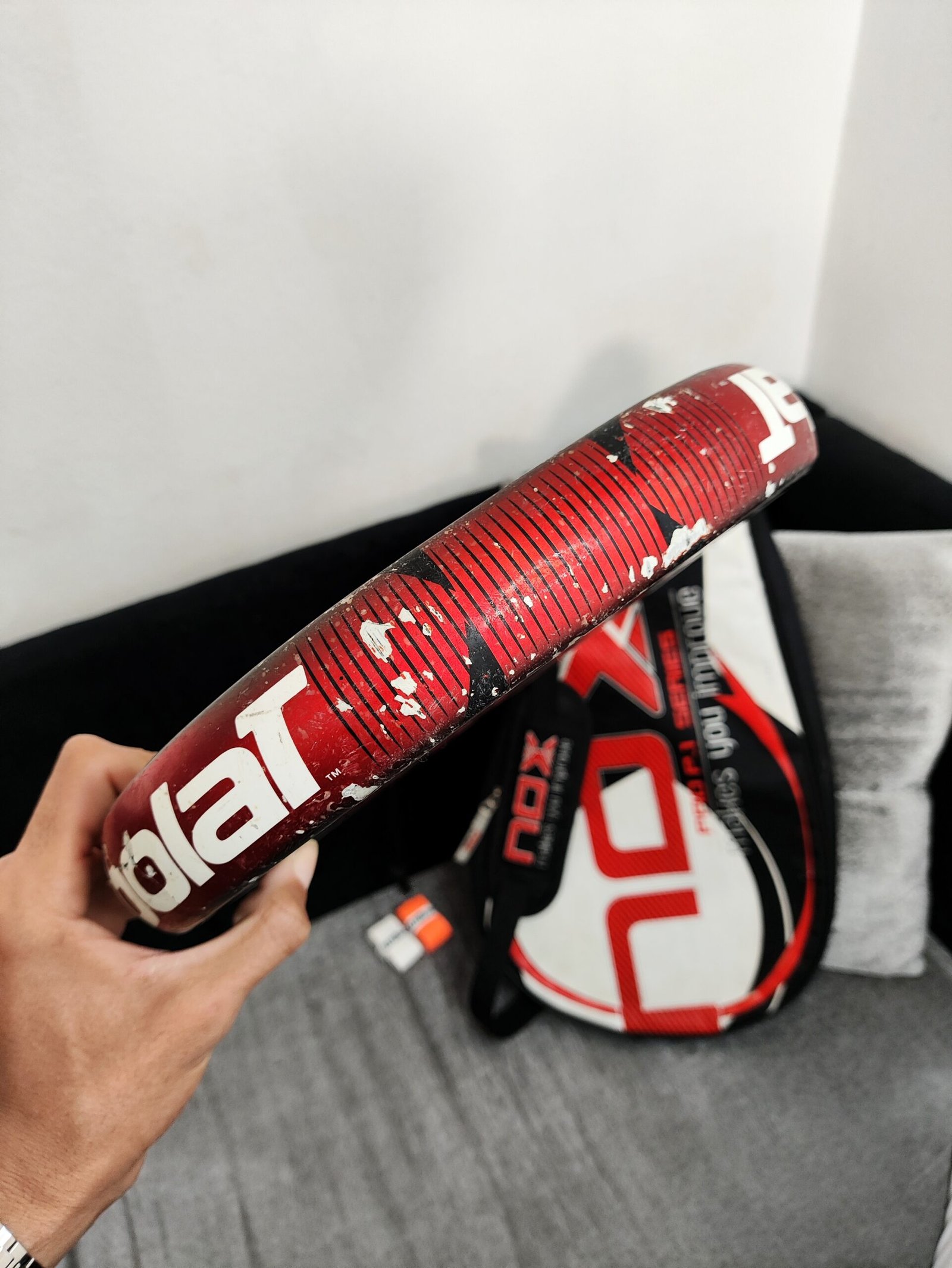 Forme :Diamant, avec un équilibre en tête de raquette pour favoriser les smashs et les coups puissants.
