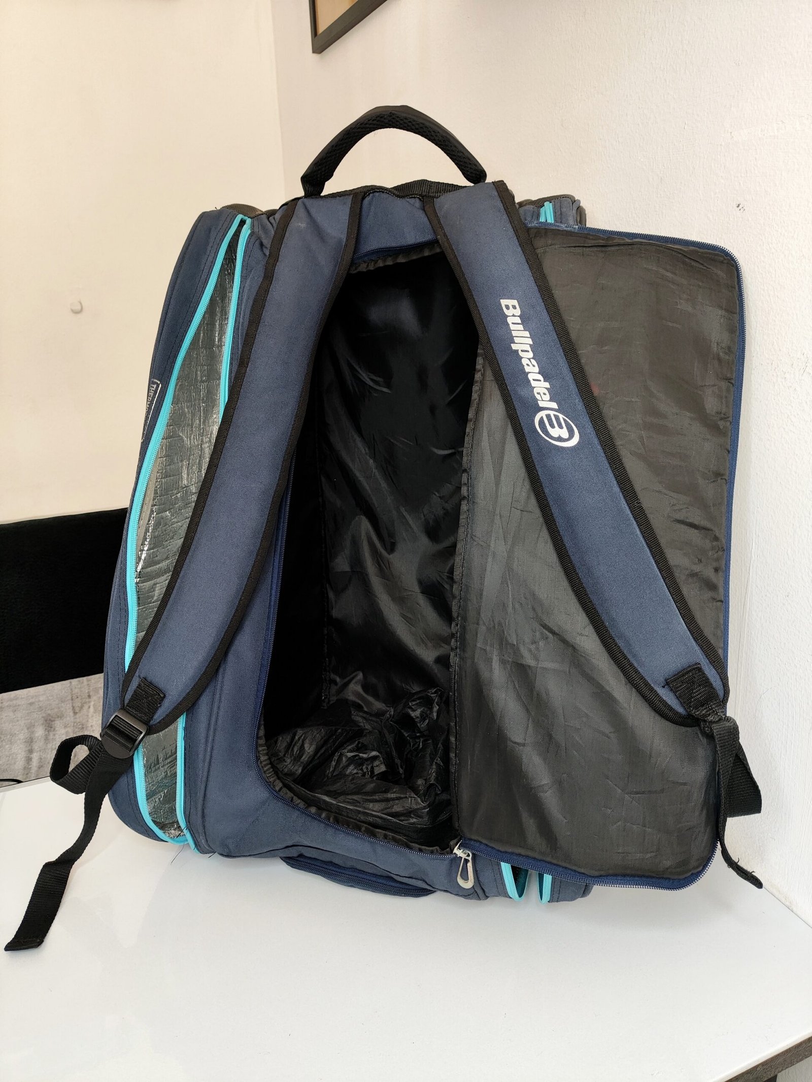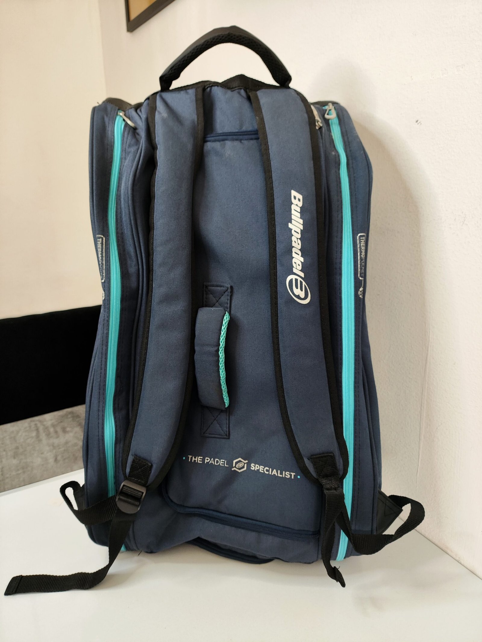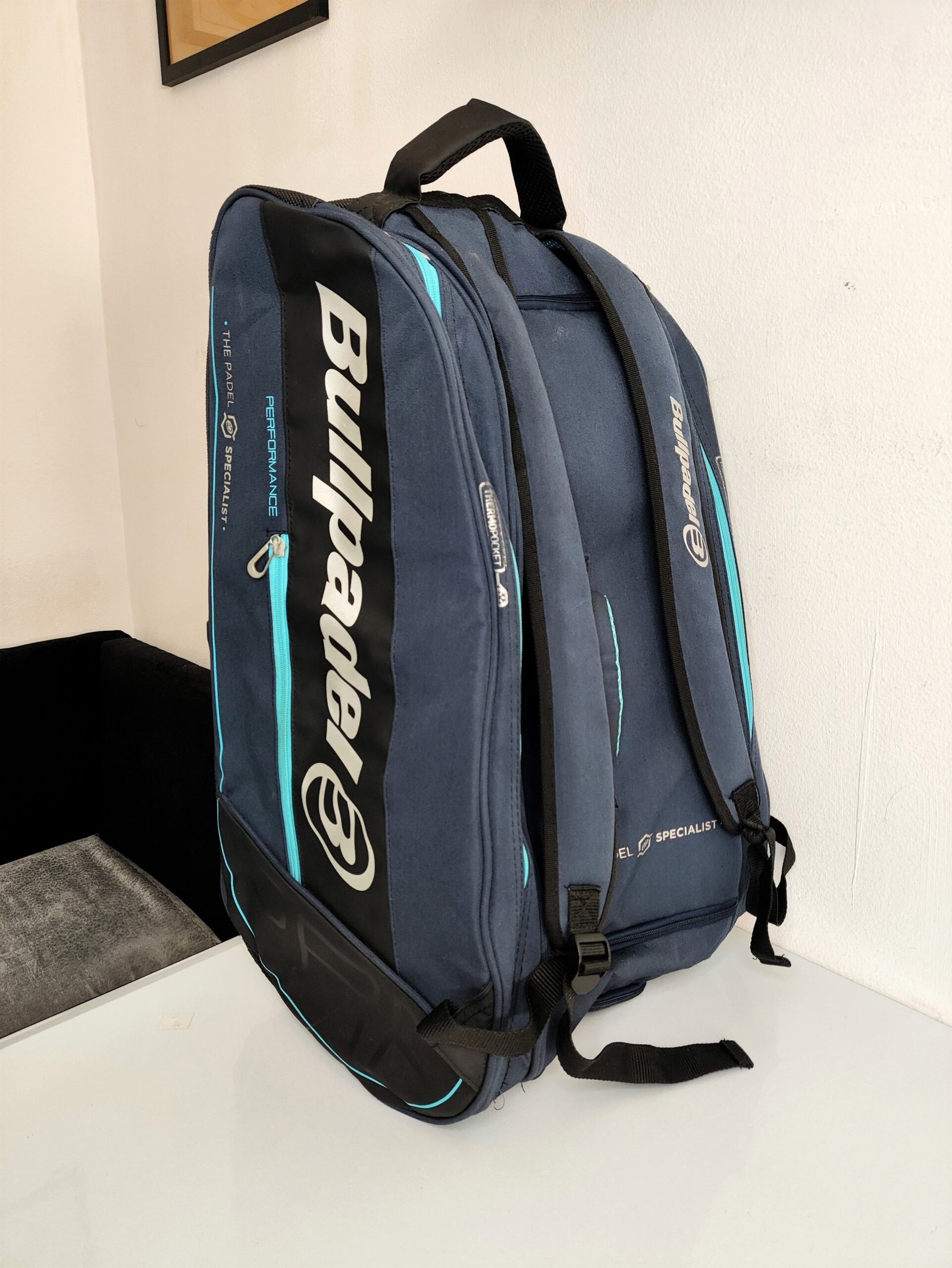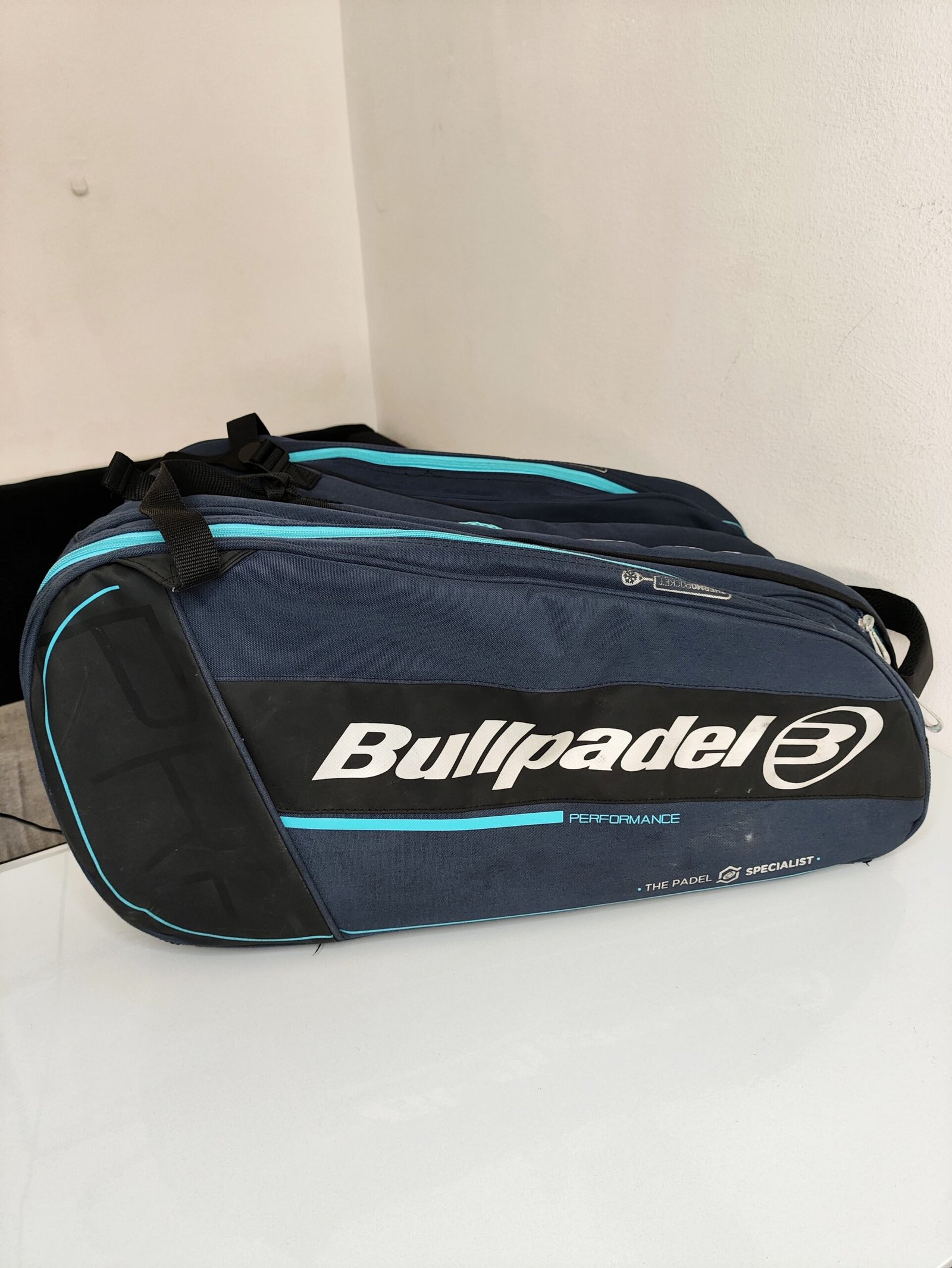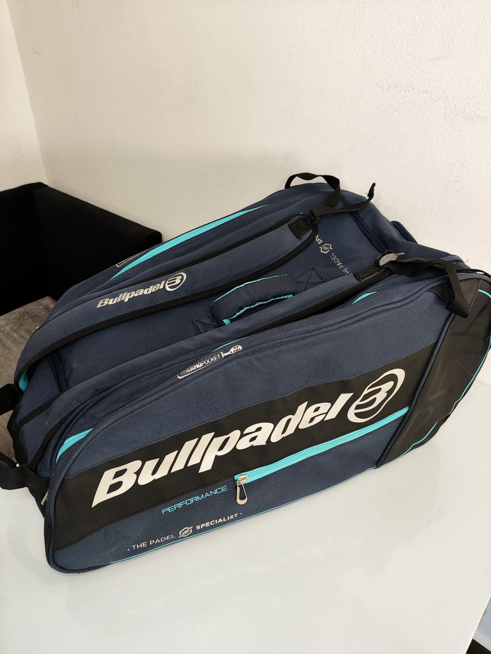 Ce sac est le Bullpadel BPP-22014 Performance, un sac de padel de grande capacité conçu pour transporter jusqu’à 8 raquettes.