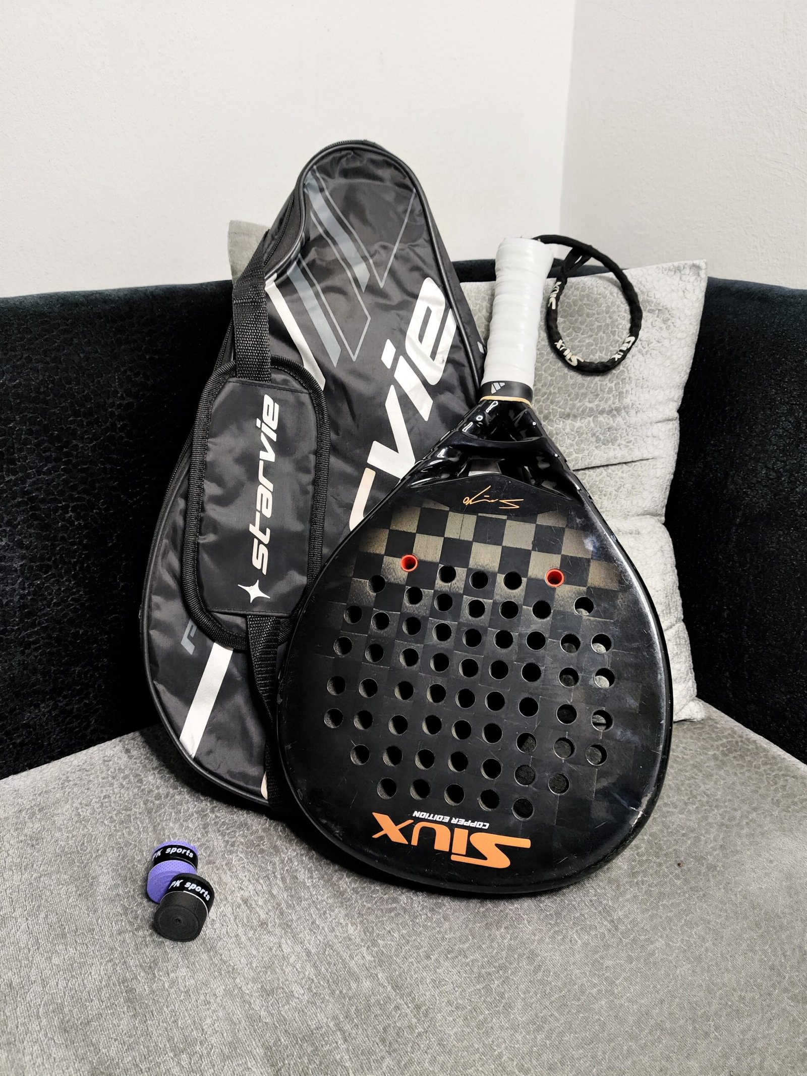 ✅ Overgrip (Couleur de votre choix), utilisés pour améliorer la prise en main et absorber la transpiration.