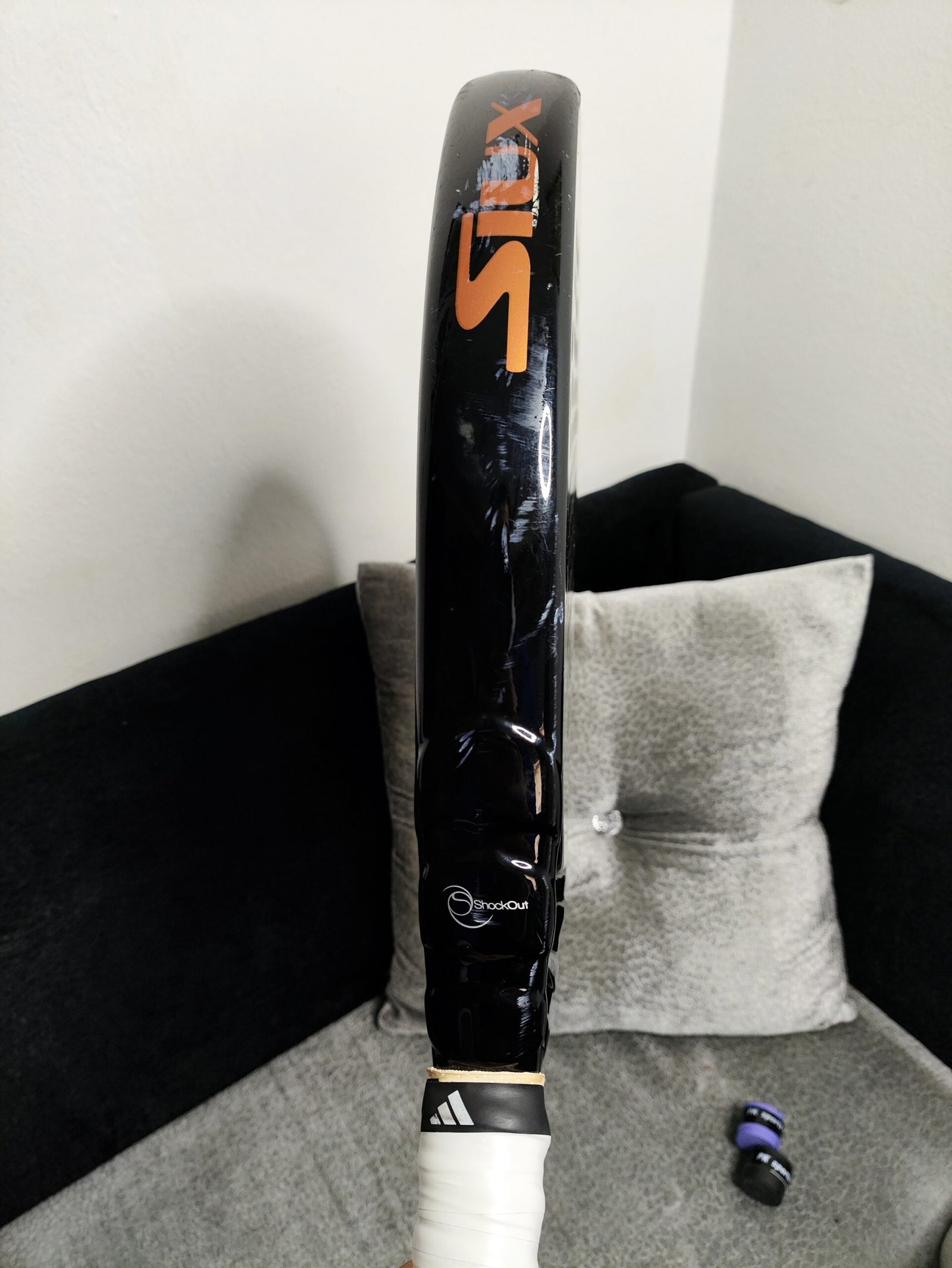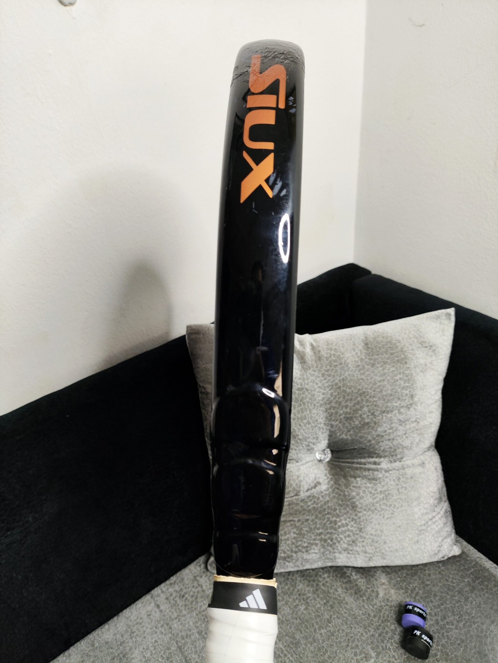 - Noyau : Gomme Black EVA High Recovery, moyennement dure, pour une meilleure sortie de balle.